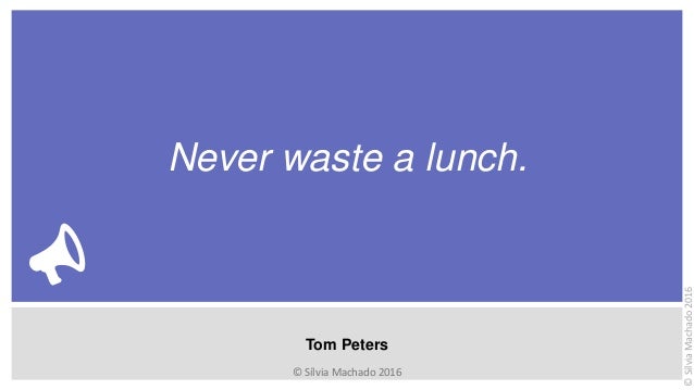 99. 99. ©SílviaMachado2016 Never waste a lunch. Tom Peters © Sílvia Machado 2016