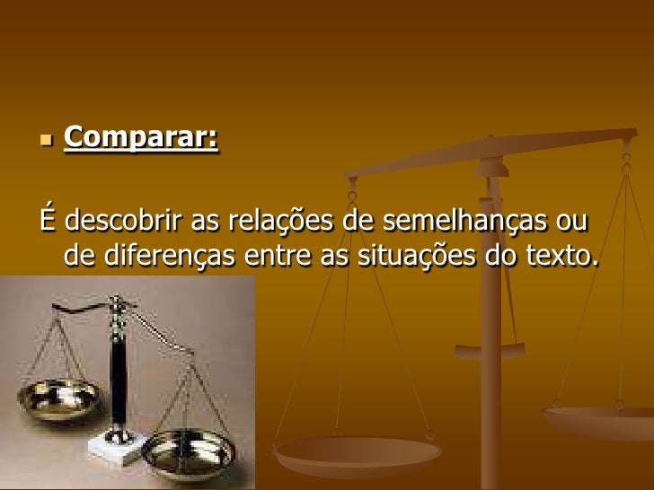 8. 8.  Comparar: É descobrir as relações de semelhanças ou de diferenças entre as situações do texto.