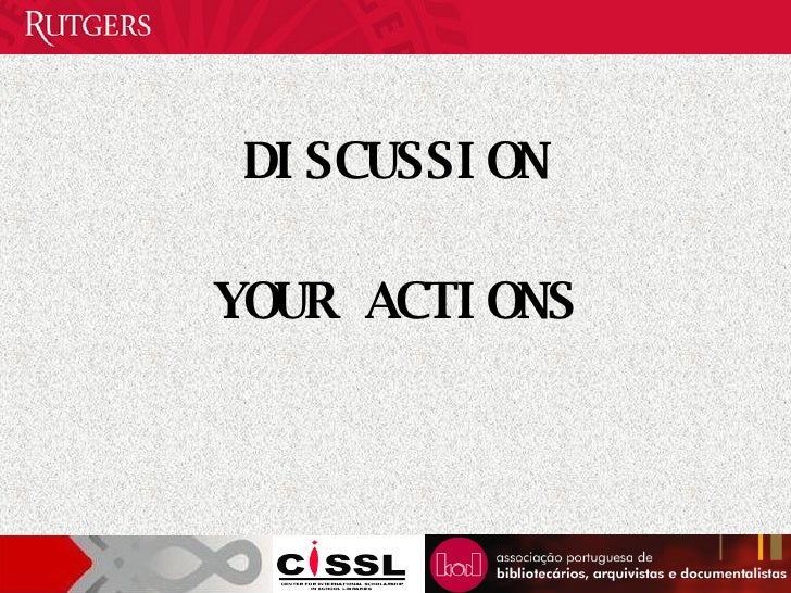 <ul><li>DISCUSSION </li></ul><ul><li>YOUR ACTIONS </li></ul>